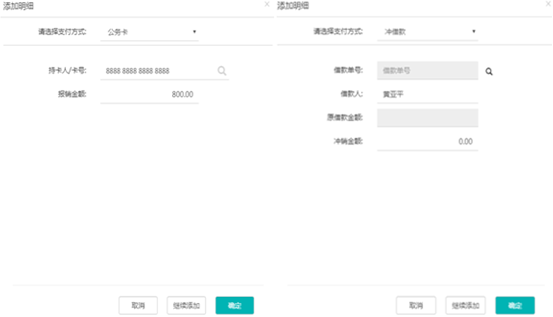 日常報(bào)銷支付方式提供公務(wù)卡、對(duì)公、對(duì)私、現(xiàn)金、沖借款等方式。