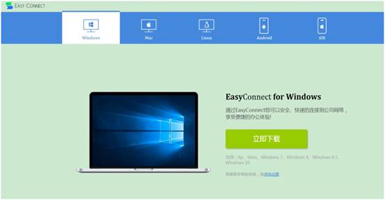 B、首次使用需要安裝EasyConnect客戶端,請(qǐng)點(diǎn)擊下載鏈接進(jìn)行下載安裝。EasyConnect客戶端只需要安裝一次。