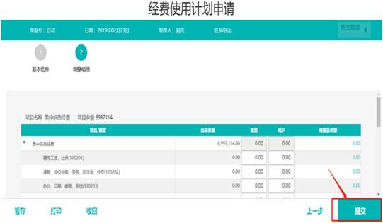 確認(rèn)單據(jù)基本信息以及調(diào)整信息準(zhǔn)確無誤后進(jìn)行提交。