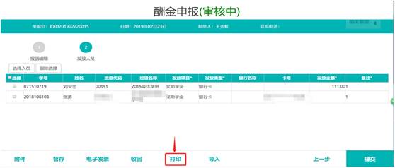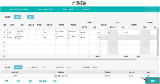 單據(jù)提交后,可以進(jìn)行打印、簽字