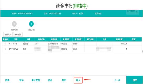 (3)學(xué)生錄入,點(diǎn)擊“選擇人員”,可以選擇發(fā)放學(xué)生的數(shù)據(jù), 然后錄入發(fā)放金額。