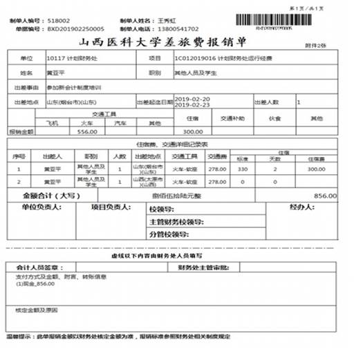 打印后的預(yù)約報(bào)銷單及原始憑證(如:發(fā)票、車票、差旅費(fèi)審批單、合同等),按照學(xué)校經(jīng)費(fèi)審批流程經(jīng)相關(guān)負(fù)責(zé)人簽字后,到計(jì)劃財(cái)務(wù)處報(bào)銷(迎澤校區(qū)辦公樓406室或中都校區(qū)辦公樓407室)。