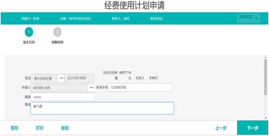 經(jīng)費(fèi)使用計(jì)劃基本信息填寫,填寫需要調(diào)整的項(xiàng)目、事由等相關(guān)信息。