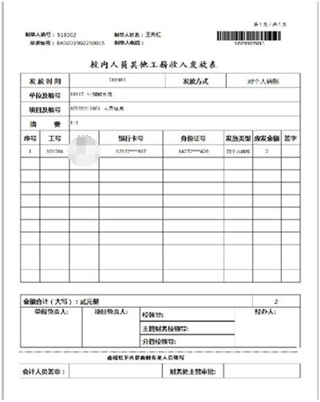 (1)校內(nèi)人員錄入,點(diǎn)擊“選擇人員”可以選擇發(fā)放人員的數(shù)據(jù),然后錄入發(fā)放金額。