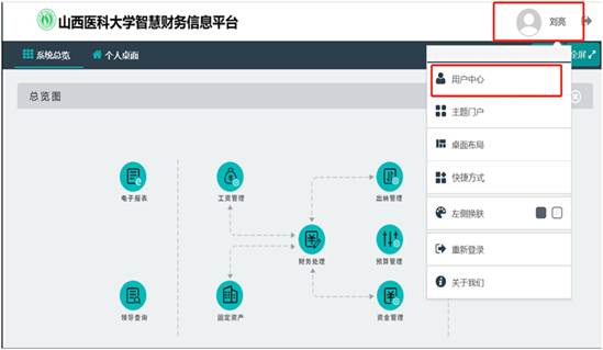 修改密碼操作步驟:先點(diǎn)擊個(gè)人頭像,點(diǎn)擊“用戶中心”。