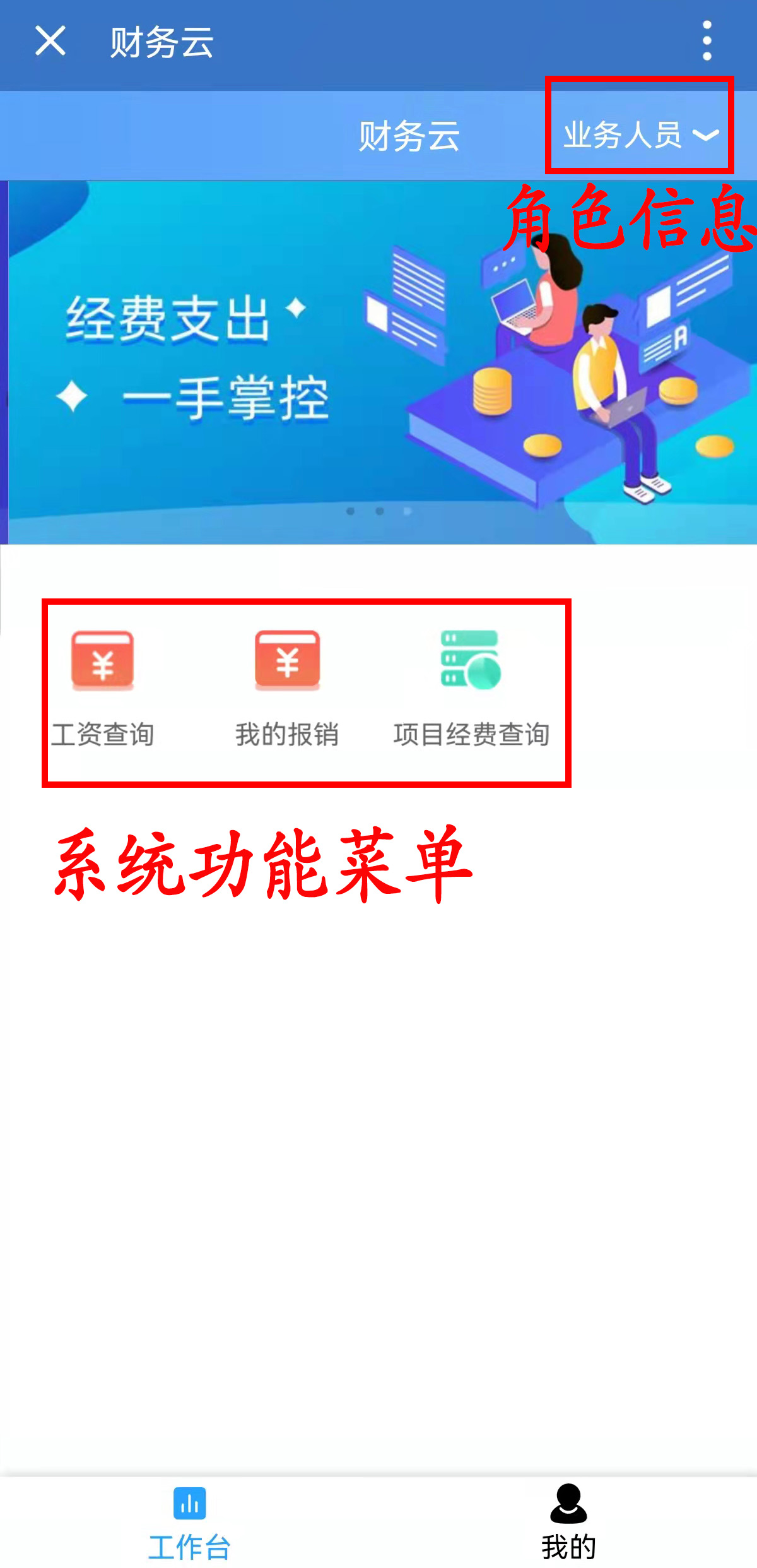 進(jìn)入系統(tǒng)后,單擊功能菜單,進(jìn)入業(yè)務(wù)操作頁(yè)面,若下圖頁(yè)面不顯示,請(qǐng)返回重新打開財(cái)務(wù)應(yīng)用: