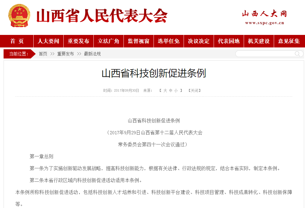 2020-10-30《山西省科技創新促進條例》山西省科技創新促進條例(2017年9月29日山西省第十二屆人民代表大會常務委員會第四十一次會議通過)第一章 總則第一條 為了實施創新驅動發展戰略,提高科技創新能力,根據有關法律、行政法規...MORE