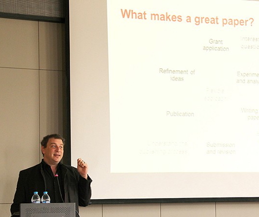 2014年9月1日,c7c7.app建校95周年系列學術活動之一——“Nature出版集團麥克米蘭科技寫作與論文發表(Scientific Writing and Publishing Workshop)”學術活動在我校醫學科研實驗中心5層報告廳圓滿舉行。Nature出版集團和國際著名出版商麥克米蘭公司2名資深編輯Ed Gerstner博士和Peter Gorsuch博士蒞臨我校,分享了科技論文寫作的策略和技巧,解讀了世界頂級學術期刊的出版流程,進行了為期1天的學術交流。有近100名學員參加培訓,學員為來自我校各院系的博士生導師、承擔國家級項目的科研人員及在讀博士。