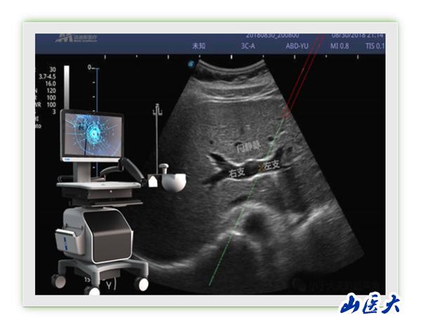 近日,第一醫院腫瘤與血管介入科馮對平主任團隊成功完成山西省首例超聲用電磁定位穿刺引導TIPS術。該技術將超聲圖像與電磁信號相融合,突破傳統超聲引導必須在平面內或平面外穿刺制約,能夠在任意位置、任意角度、任意平面穿刺靶點,真正實現實時三維穿刺導航。更為重要的是,該技術具有我國自主知識產權。馮對平說:“該新型穿刺引導技術能夠大大降低TIPS術中門靜脈穿刺難度,提高TIPS手術成功率,同時術者及患者受X線輻射時間也明顯縮短,值得進一步推廣應用。”