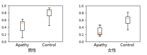 方法對男性和女性的冷漠癥組與對照組之間區(qū)分度