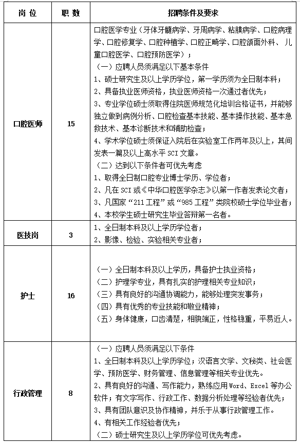 招聘政策和具體事宜可咨詢c7c7.app口腔醫(yī)院人事科。