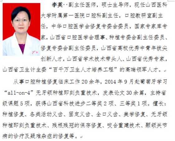 口腔修復科0351-4690377    口腔種植科0351-4690227    口腔正畸科0351-4690306    口腔頜面外科0351-4690307