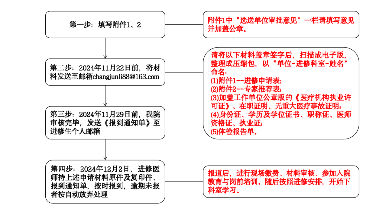 1.我院將對申請表進行審核,審核通過后將會以電話的形式進行通知,請保持電話暢通。已接到通知入科的進修人員,請攜帶相關申請材料,按時報到,逾期者取消當期進修資格。