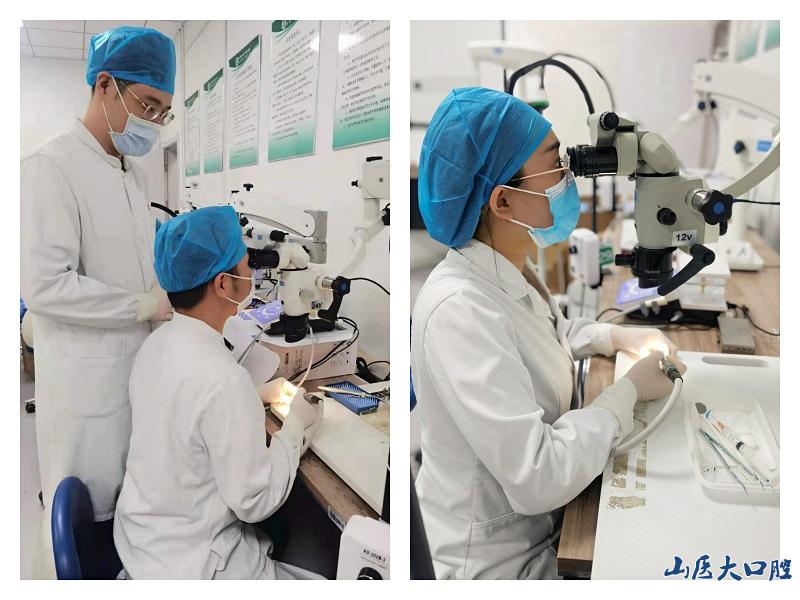 為確保每位學員充分掌握該項技能,由葛學軍副院長帶領的臨床根管治療教學組教師全程參與教學輔助工作,在根管治療臨床技能訓練課程幫助下,實現每人配備顯微鏡、超聲蕩洗儀、取斷針套管系統及樹脂?櫚,充分模擬臨床實際。