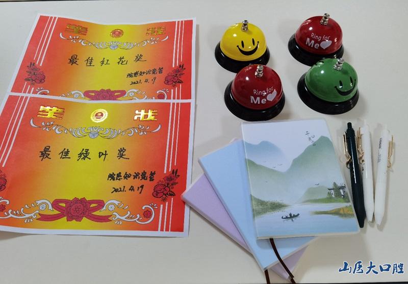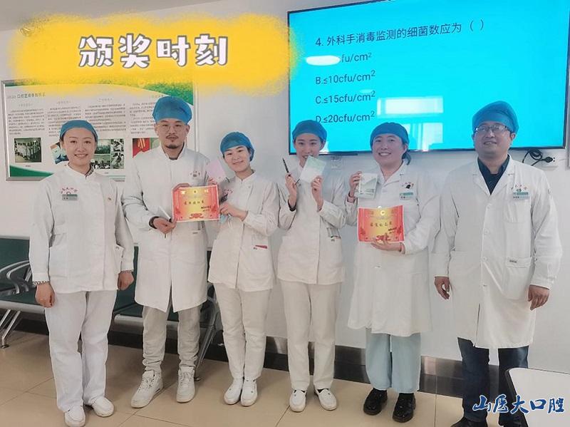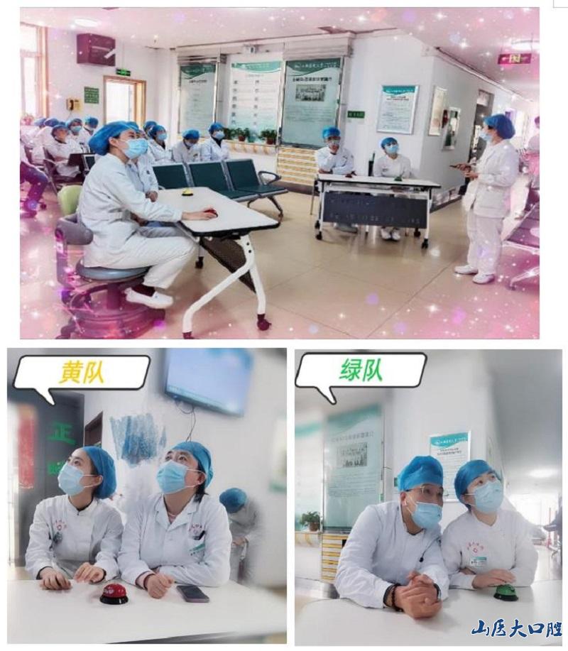 本次活動由護士長王瑋策劃,院感護士王雪麗組織,比賽分黃、綠兩隊,各隊均由一名醫生和一名護士組成。兩隊通過搶答形式獲得答題資格,競答內容圍繞疫情防控、手衛生、醫療廢物的分類、職業暴露等方面,經過緊張、激烈的角逐,最終黃隊勝出。