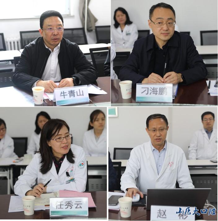 調研會上,刁海鵬副校長對牛青山副廳長一行的到來表示熱烈歡迎,介紹了我校整體科研情況,并對醫院的下一步建設工作,提出了具體的指導意見。趙彬院長對我院基本情況和科研情況進行簡要匯報,并就口腔疾病臨床醫學研究中心的組織架構、平臺建設、網絡架構、運行規劃等方面進行了全面而翔實的匯報。