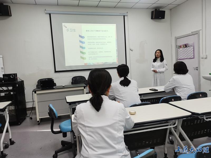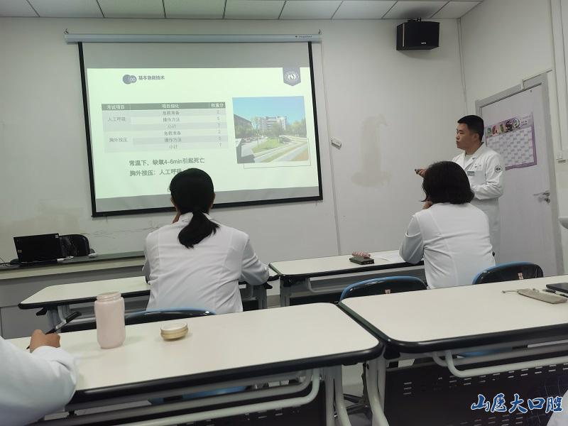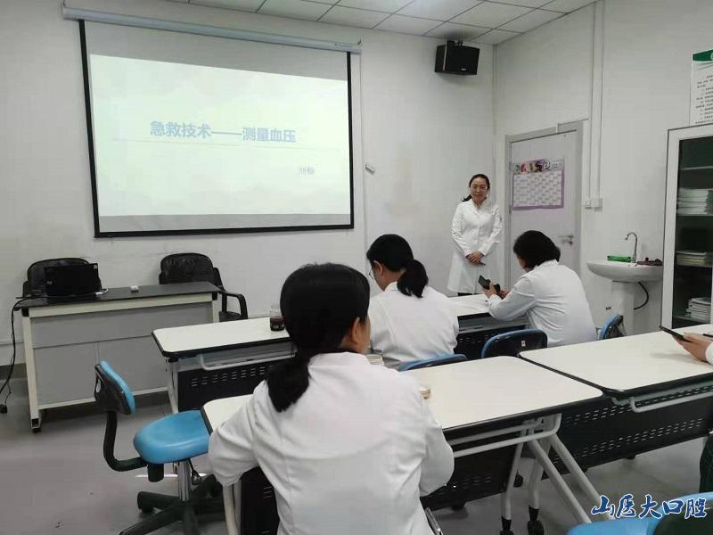 本次全科組試講由米雁翎、王麗香、任立志、劉暢、原路5位教師組成,各位教師根據自己承擔的授課內容和章節分別進行試講,內容豐富全面,包括頜面部基本檢查、手衛生、戴手套、黏膜消毒、拔牙術、血壓測量、吸氧術、人工呼吸、胸外按壓等。