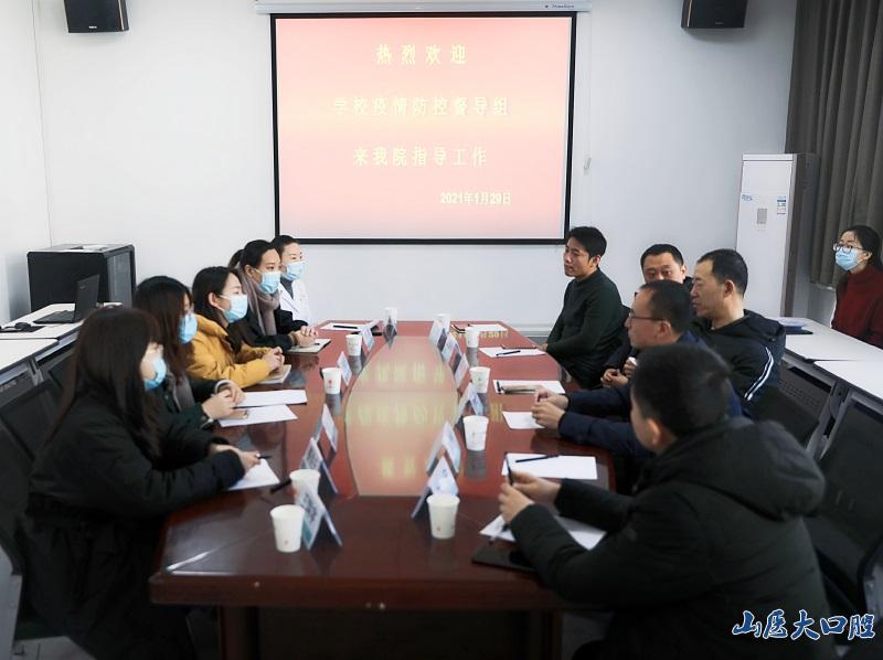 督導組對我院疫情防控工作給予了充分的肯定并提出了切實可行的建議。會議指出,對專碩研究生要全方位落實學校及醫院的疫情防控工作,對本科實習生可通過直播課程的形式開展線上教學;要加強在線課程建設,打造研究生精品課程,進一步推進第五輪學科評估工作;要與衛健委積極聯系,切實做好新冠肺炎疫苗接種工作;應提倡春節不回家、執行就地過年政策,重點關注留校學生的生活及心理情況;要持續做好每日健康打卡及統計工作,如實掌握學生的行動軌跡,切實完善日常監管工作及外出請假手續。曹小清強調,在院感方面,口腔面臨的風險更大,要進一步落實規培基地疫情防控工作,發揮導師作用,關注重點人群,掌握學生動向,完善請銷假手續,安撫留校學生的焦慮情緒。