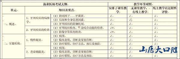 (口腔執(zhí)業(yè)醫(yī)師《牙周病學(xué)》考試大綱與教學(xué)環(huán)節(jié)對(duì)照表)