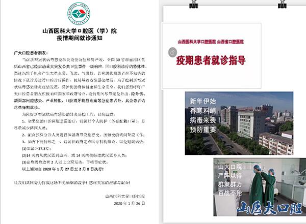 新冠肺炎疫情發(fā)生以來,院感科爭分奪秒學習新冠防控知識,為避免人群聚集,創(chuàng)新院感工作方法,根據(jù)口腔醫(yī)院診療特性編寫針對患者的《c7c7.app口腔醫(yī)(學)院疫情期間就診通知》及拍攝《c7c7.app口腔醫(yī)(學)院疫情期間患者就診指導》視頻,及時對廣大患者進行口腔診療與疫情傳播的科學知識普及并直觀全面的讓患者了解疫情期間的就診注意事項。