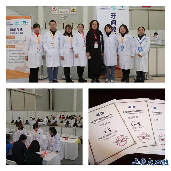 我院王翔宇副教授經過層層選拔,被遴選為16名考官中的一員,并擔任牙間隙刷考核組的組長,我院宋莉和侯如霞醫師通過考核成為窩溝封閉和局部用氟操作體驗區的指導老師,對來自全國各地的上千名醫務人員進行考核和指導!我院三名醫生通過數日的優異表現,均榮獲“健康口腔推廣大使”證書。此次公益活動更是創造了多個國內“第一次”:第一次大規?菇】悼誶患寄芘嘌擔壞諞淮紊枇⒖誶磺褰嗷だ磧悶廢殖√逖椋壞諞淮謂鋅誶喚】悼破兆髕氛故菊共。