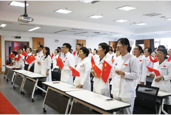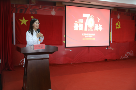 為迎接偉大祖國70歲華誕,9月30日下午,在口腔醫院八層教室我院召開慶祝中華人民共和國成立70周年主題黨日活動。院領導、全體教職工及學生黨員參加了活動。活動由院黨委書記任秀云主持。