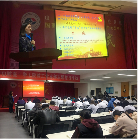 接著,任秀云書記為大家解讀了習近平總書記“對黨忠誠、個人干凈、敢于擔當”十二字“好干部”標準。12字標準是對20字標準的高度概括,并詳細解釋了“忠誠”、“干凈”、“擔當”的豐富內(nèi)涵和標準要求。她要求全院職工“心存敬畏,守住底線”、“慎獨慎微,管住自己”、“勤于自省,能于自控”。結合我院10.20-11.20為期一個月的醫(yī)療服務中開展私收費、少收費、漏收費專項整治工作,醫(yī)院專項整治工作組對我院三個涉及外加工的臨床科室--修復科、正畸科、種植科進行了隱患檢查和票據(jù)抽查,對三個醫(yī)技科室--影像科、檢驗科、藥房進行了專項檢查。目前為止,尚未發(fā)現(xiàn)私收費問題。下一步請全院職工加強監(jiān)督,勇于揭發(fā)問題,在全院扎實開展不擔當不作為突出問題的排查及整治工作。