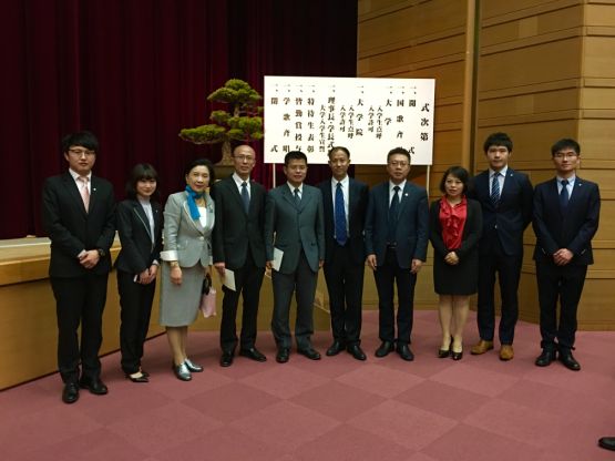 隨后,代表團一行參觀訪問了大阪齒科大學圖書館、中央齒學研究所、附屬醫院、楠葉校區和牧野校區,并探望了9名我校目前在日交流的學生,并與他們進行親切座談。在楠葉校區,代表團與中國駐大阪總領館代表教育室室長吳勁松參贊和盛弘強領事一同參加了開學式并就中日友好交流、學術共享進行了溝通和探討。