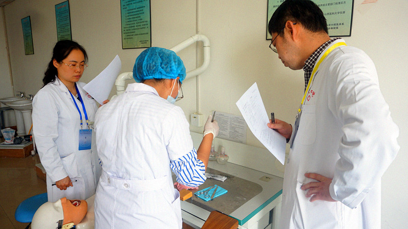本次考核包括口腔全科、口腔修復(fù)科、口腔正畸科、口腔頜面外科四個專業(yè)學(xué)科。按照山西省衛(wèi)計委住院醫(yī)師規(guī)范化培訓(xùn)臨床技能結(jié)業(yè)考核要求,采用OSCE多站式考核形式,通過現(xiàn)場讀片、病例分析(面試提問)、模型基本技能和專業(yè)特色技能操作進(jìn)行考核,并當(dāng)場進(jìn)行評分。