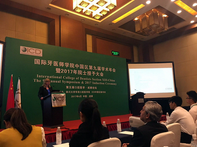 ICD國際主席Dr. Rajesh Chandna、ICD國際理事Dr. Karen West、中華口腔醫學會會長俞光巖教授、ICD中國區主席周學東教授、秘書長陳謙明教授和中國區院士等100余人出席了會議。會上,Dr. Rajesh Chandna就ICD的發展沿革和歷史使命做了精彩的主題演講。Dr. Karen West、俞光巖教授、周學東教授分別代表ICD總部、中華口腔醫學會和ICD中國區致辭,并為新晉院士頒發了證書以及ICD金鑰匙和金別針。我院張并生教授和趙彬院長經中華口腔醫學會的權威推薦,通過了國際牙醫師學院國際理事會的層層篩選和多次審核,被授予“國際牙醫師學院中國區院士”稱號。