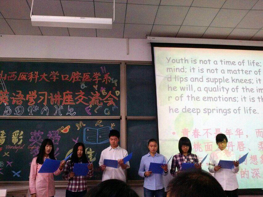 為進一步激發同學們的英語學習興趣,探尋英語學習新途徑,在學生中營造健康向上、積極進取的學習氛圍。我系分團委、學生會于11月15日在新校區慎思樓c101教室舉辦了以“精彩英語,多彩人生”為主題的英語講座學習經驗交流會。本次活動特別邀請了校團委李燁、外語系分團委書記秦潔、法醫學系分團委書記李祖峰、兒科醫學系分團委書記李軍出席指導。