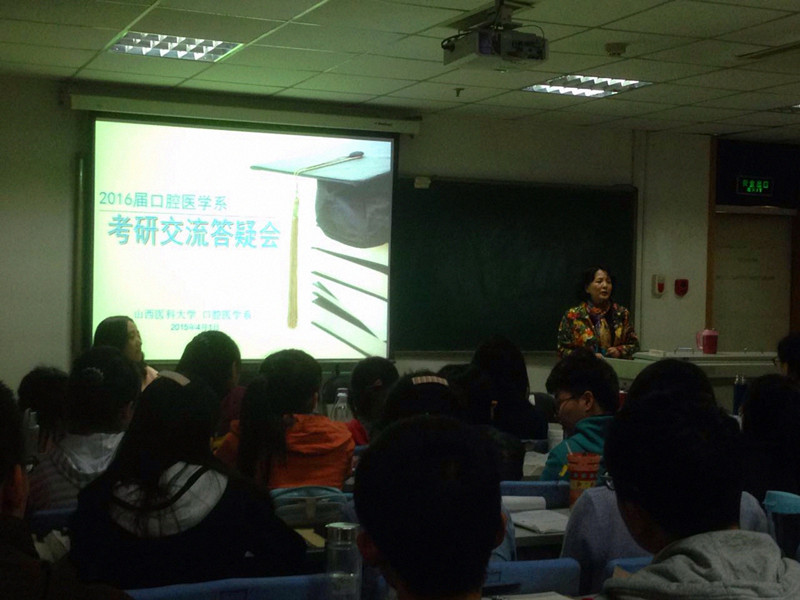 隨后,各專業(yè)老師與大家分享了考研過程中一些報(bào)考院校、專業(yè)的信息以及注意事項(xiàng)的問題,為同學(xué)們答疑解惑。老師們的建議使同學(xué)們對(duì)專業(yè)的報(bào)考方向有了更深的認(rèn)識(shí)。答疑會(huì)上同學(xué)們積極提問,認(rèn)真聆聽,老師們的熱情講解贏得了同學(xué)們的陣陣掌聲。最后,殷鳳副書記將口腔醫(yī)學(xué)系近幾年的就業(yè)情況,向同學(xué)們作了詳細(xì)的介紹,同時(shí)告誡同學(xué)們考研并不是唯一的道路,要切合實(shí)際的選擇一條真正屬于自己的路。但是如果確定了考研,除了勤奮努力還要樂觀,過程走好了,結(jié)果也不會(huì)差。