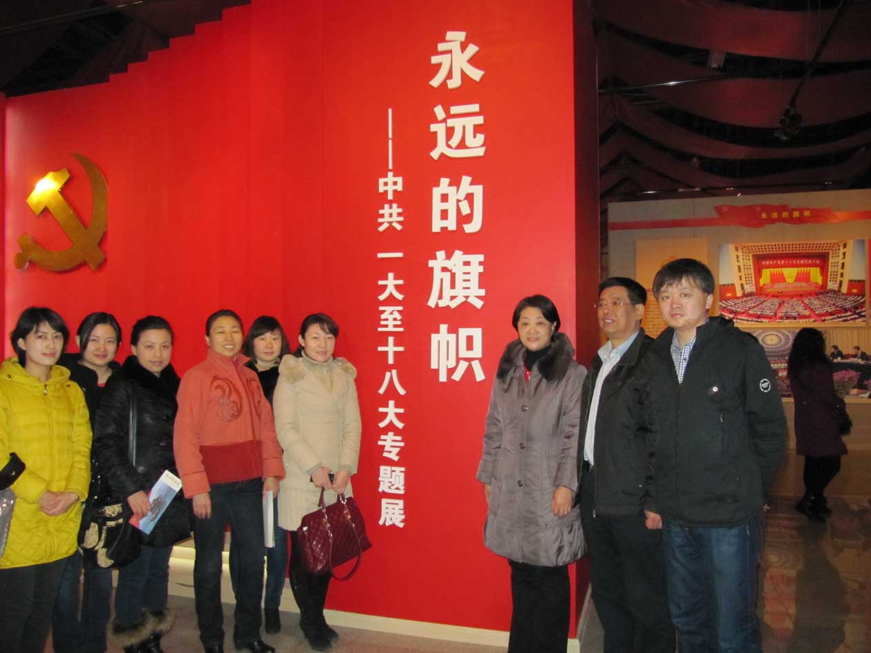 為了深入學習貫徹黨的十八大精神,1月10日上午,我?誶灰窖檔匙苤尷晉書記、殷鳳副書記帶領教工黨員代表、學生黨員代表一行赴山西省博物院參觀了《永遠的旗幟——中共一大至十八大專題展》。