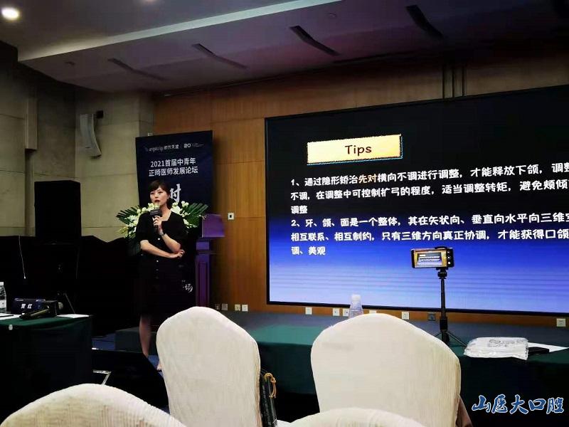 時代天使專場中我科室馬艷寧副主任醫師在隱形矯治專場就青少年隱形矯治的矢狀向控制進行交流演講。