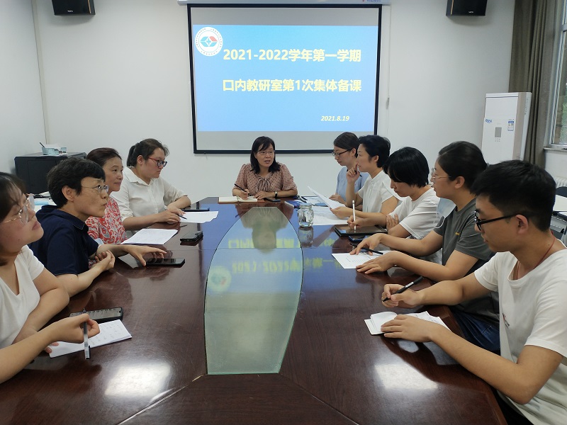 2021年8月19日上午,我院口內教研室主任、課程負責人、全體授課教師及課程秘書在215會議室開展了2021-2022學年第一學期第一次集體備課,為新學期即將開課的《牙體牙髓病學》、《臨床牙周病學》、《口腔粘膜病學》、《兒童口腔醫學》、《口腔預防醫學》共5門口內課程嚴格把關,并提出了相應整改措施。
