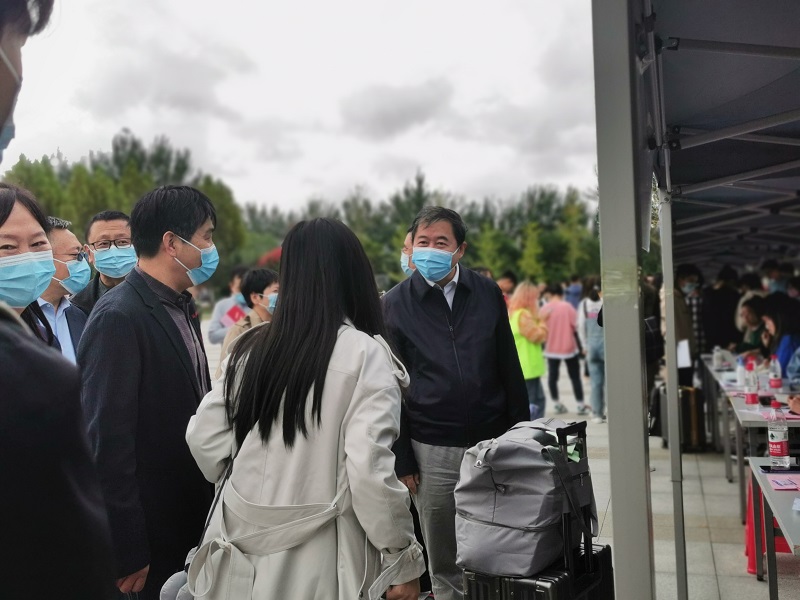 整個迎新活動嚴格按照學校疫情防控要求,嚴謹有序進行,在確保新生健康碼、行程碼、核酸檢測陰性報告無問題后方可入校,最大程度保障新生的健康與安全。活動當天,校長李思進及班子成員一行蒞臨我院迎新報到點,指導我院迎新工作,并親切慰問了前來報到的新生、志愿者及工作人員們。