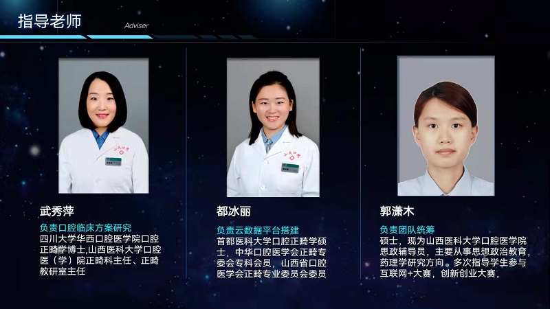 我院武秀萍教授、都冰麗、郭瀟木老師作為指導教師參與研發此項目。武秀萍教授多次主持國自然科學基金項目,獲批國家專利8項;都冰麗老師在團隊中負責云數據平臺搭建;郭瀟木老師負責團隊統籌等。該項目在我院教師的全力支持下,從技術、醫學、法律、財務顧問等多方面助力項目研發及推廣。
