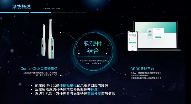 “齒正康——大數據智能口腔診斷服務系統”項目是基于提升廣大口腔醫生醫療水平這一理念,借助AI智能核心技術,推出了齒正康——大數據智能口腔診斷服務系統。系統由Dental Click口腔攝影儀與ORDS智能平臺構成,由大數據、物聯網以及人工智能技術搭建,可實現特異性、敏感性,準確率均達到98%以上。本項目目前已擁有專利1項,軟著1項,再審軟著一項,并受到多方關注和資金支持,現已申報國家級大創五項。