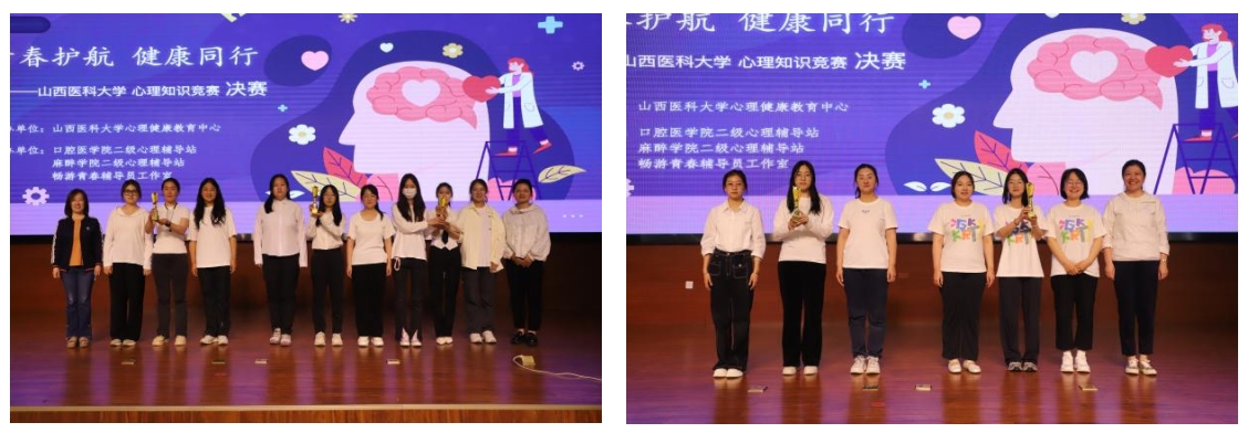 經過三輪激烈比拼,護理學院代表隊摘得桂冠,汾陽學院代表隊與馬克思主義學院代表隊榮獲二等獎,公共衛生學院代表隊、管理學院代表隊及基礎醫學院代表隊獲得三等獎。在莊重的頒獎典禮上,評委老師為獲獎隊伍頒發榮譽證書與獎杯,現場掌聲雷動,見證這一榮耀時刻。活動結束后,參賽選手與現場觀眾紛紛表示,通過此次比賽深化了對心理健康知識的理解,有效提升了心理調適能力,在今后的學習生活中將更好地運用所學知識守護心靈健康。