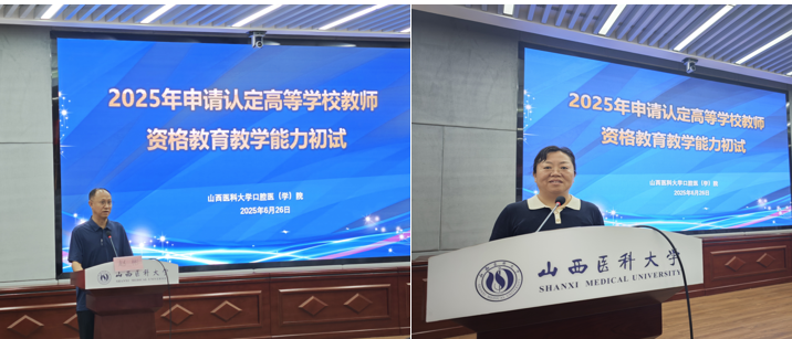 6月26日,2025年高等學校教師資格教育教學能力初試在我院東院區(qū)1號樓一層報告廳順利舉行。本次初試由校教學督導委員會統(tǒng)籌,校人事部、教務部、醫(yī)院管理部聯(lián)合組織,口腔醫(yī)學院(口腔醫(yī)院)51名醫(yī)護人員參加本次初試。