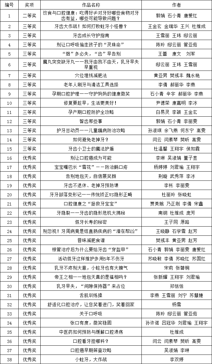 本次大賽中,我院共選送79件健康科普作品參賽,作品形式豐富多樣,涵蓋圖文、視頻、音頻、海報等多種類型,內容涉及疾病防治、健康生活方式、合理用藥、口腔保健等多個領域。經過組委會嚴格評審,我院共有38件作品獲獎,整體獲獎率近50%,其中包括二等獎1件、三等獎14件、優秀獎23件。