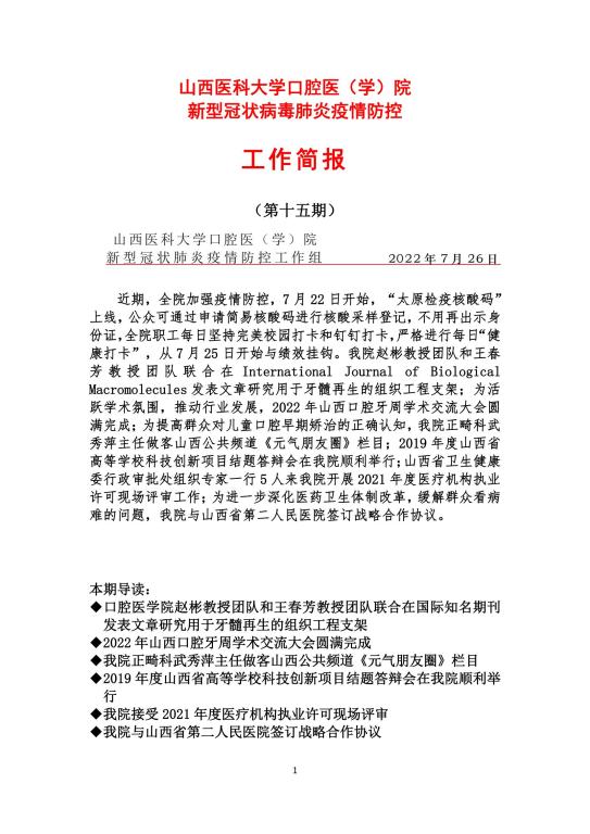 我院新型冠狀病毒肺炎疫情防控工作簡報(2022年 第十五期)