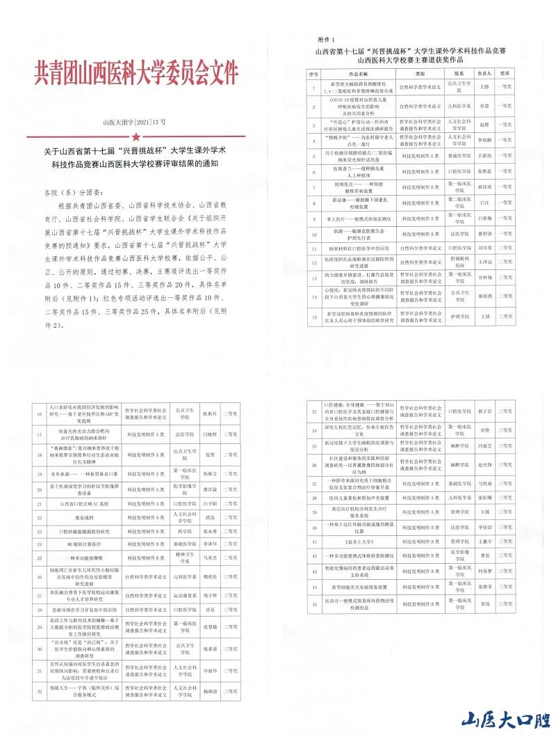 為積極響應《關于組織開展山西省第十七屆“興晉挑戰杯”大學生課外學術科技作品競賽的預通知》,我院廣泛動員學生參與。經過近兩個月的項目打磨和一個多月的評審,我院在山西省“興晉挑戰杯”c7c7.app校賽中取得驕人成績!