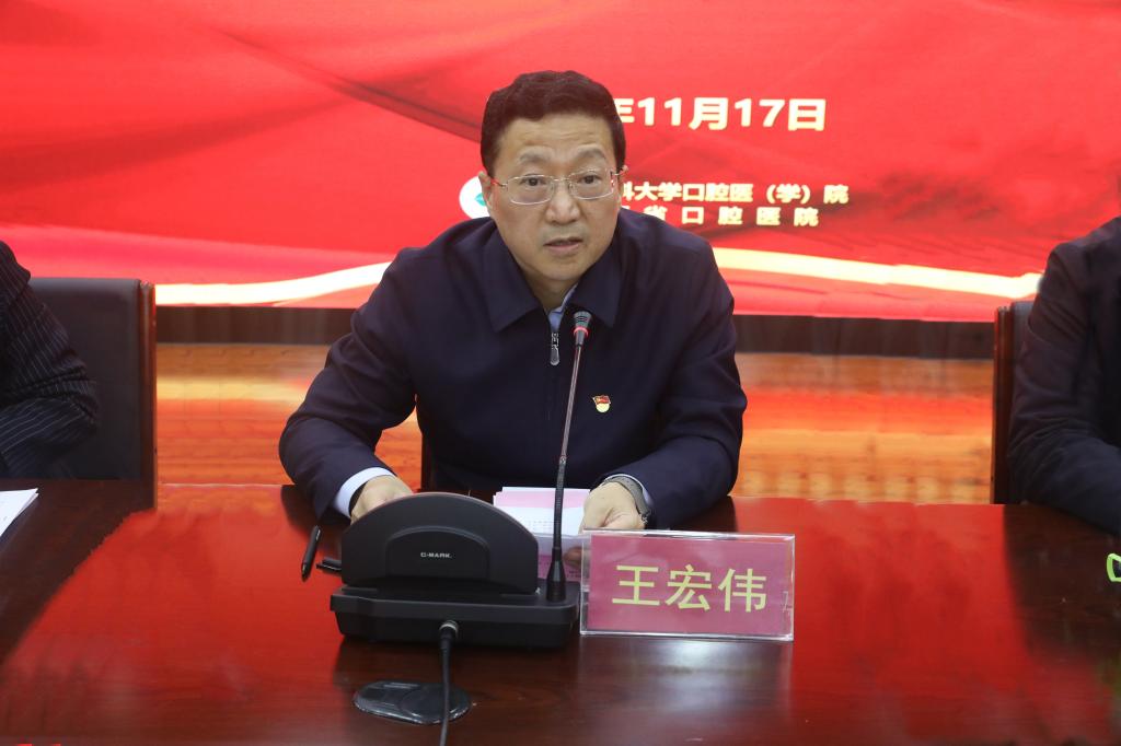 校黨委副書記王宏偉向上一屆黨委為促進口腔醫學院(口腔醫院)發展作出的卓越貢獻表示感謝,同時向新一屆黨委表示:,并對新一屆黨委會和全體黨員同志提出兩點要求:一是要在肯定成績中堅定信心,接續奮斗再出發;二是要在把握形勢中乘勢而上,擔當實干開新局,希望大家認真貫徹落實學校第七次黨代會精神,以更加飽滿的工作熱情、更加務實的工作作風,謀創新之舉,盡精誠之力,擼起袖子加油干,為奮力開啟學:涂誶灰窖г海誶灰皆海└咧柿糠⒄剮掄鞒坦畢琢α俊