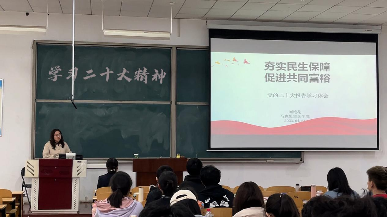 為進一步深入學習貫徹黨的二十大精神,4月21日,口腔醫(yī)學院在中都校區(qū)慎思C101教室開展了學習貫徹黨的二十大精神主題教育活動。此次活動邀請校級宣講團成員、馬克思主義學院劉艷花老師以《夯實民生保障,促進共同富?!?/strong>為題進行宣講,2022級口腔專業(yè)、2021級臨床藥學專業(yè)全體本科生參加學習。