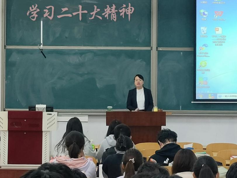 宣講會上,劉艷花老師圍繞黨的二十大報告中關于民生保障和共同富裕的內(nèi)容,結合十年來我國在民生保障方面的發(fā)展歷程,通過分配制度改革、就業(yè)、醫(yī)療保障、養(yǎng)老保障、教育、住房、健康中國建設等大量典型、生動、翔實的案例,讓同學們充分認識了黨的二十大的重大意義,促使同學們?nèi)鏈蚀_學習黨的二十大精神。