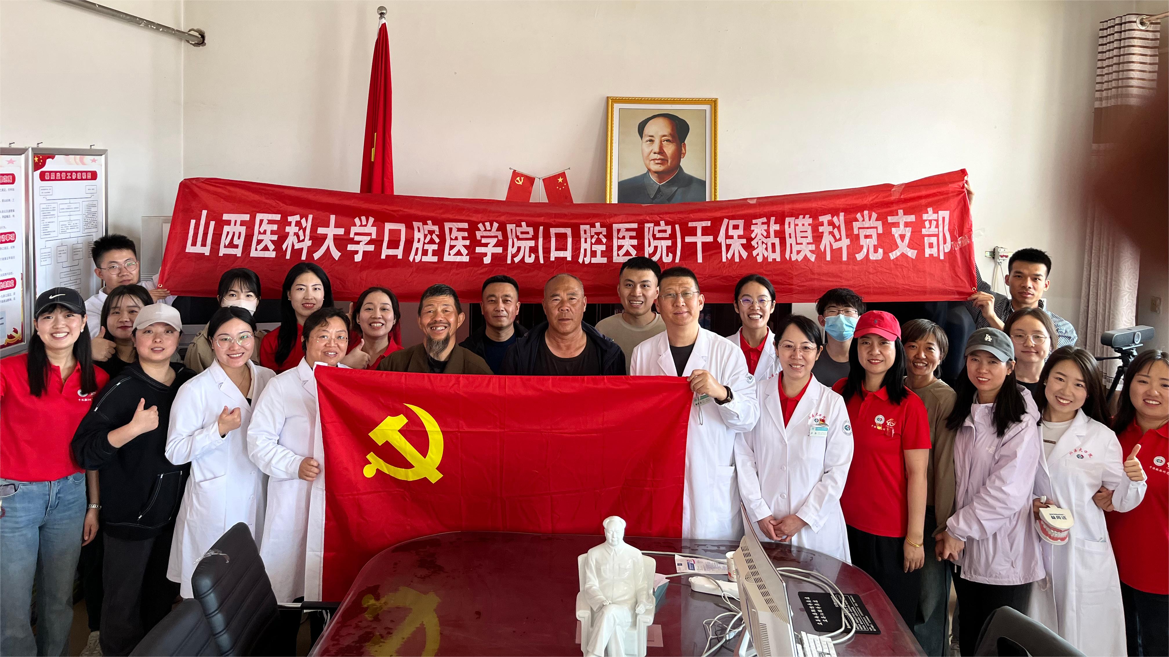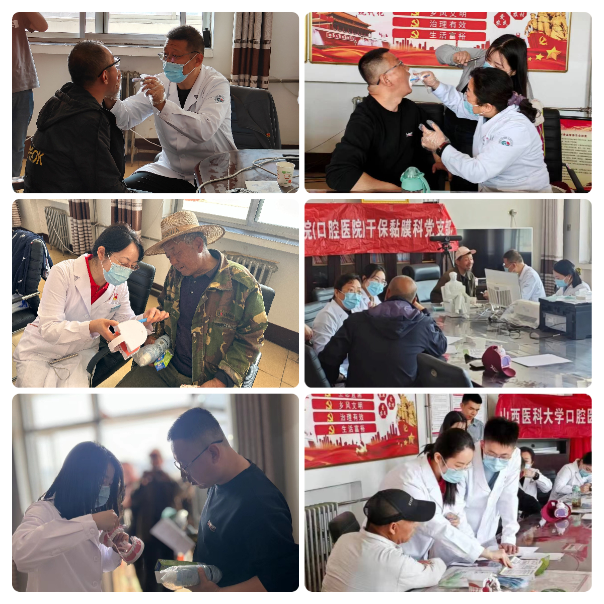 植樹活動結束后,干保黏膜科黨員同志們來到了盂縣南婁鎮大溝村村民委員會,為附近村民進行了口腔健康義診。干保黏膜科黨員同志不僅為村民們進行了口腔健康宣教,還為村民進行了詳細的口腔檢查并制定治療方案,活動最后為村民發放了牙刷、牙膏、漱口水等口腔衛生護理產品。
