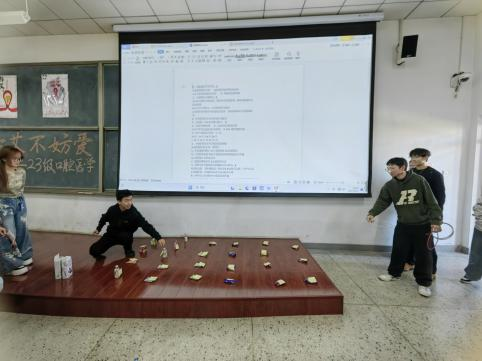 隨后的游戲環(huán)節(jié)中,同學(xué)們踴躍參加了“套圈問答”與“正話反說”項(xiàng)目?!疤兹柎稹薄弊屚瑢W(xué)們?cè)谮A取禮品的同時(shí),回答有關(guān)艾滋病來源、傳播途徑、預(yù)防措施等問題,在歡樂中加深了防艾知識(shí)記憶;“正話反說”則在鍛煉參與者思維敏捷性的同時(shí),強(qiáng)化防艾知識(shí)點(diǎn),使知識(shí)深入人心。