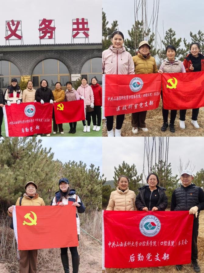 為踐行綠色發展理念,增強黨員職工的環保意識和社會責任感,3月11日,c7c7.app口腔醫院醫技科室黨支部、后勤黨支部、干保黏膜科黨支部赴太原市陽曲縣義務植樹基地,開展了以“綠動未來,醫心向黨”為主題的義務植樹活動。