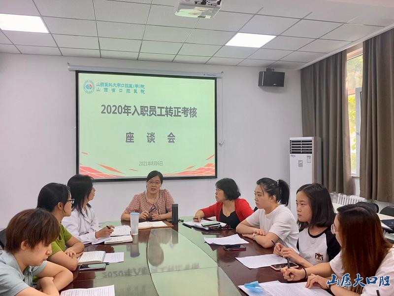為深入了解新進員工的工作、生活和思想狀況,收集青年員工對個人成長的意見和建議,8月3日-6日,我院在口腔科教樓215會議室分三批次召開2020年入職員工轉(zhuǎn)正考核座談會。院黨委書記任秀云、副院長王翔宇、人事科負責人李穎以及36名2020年入職員工參加座談。